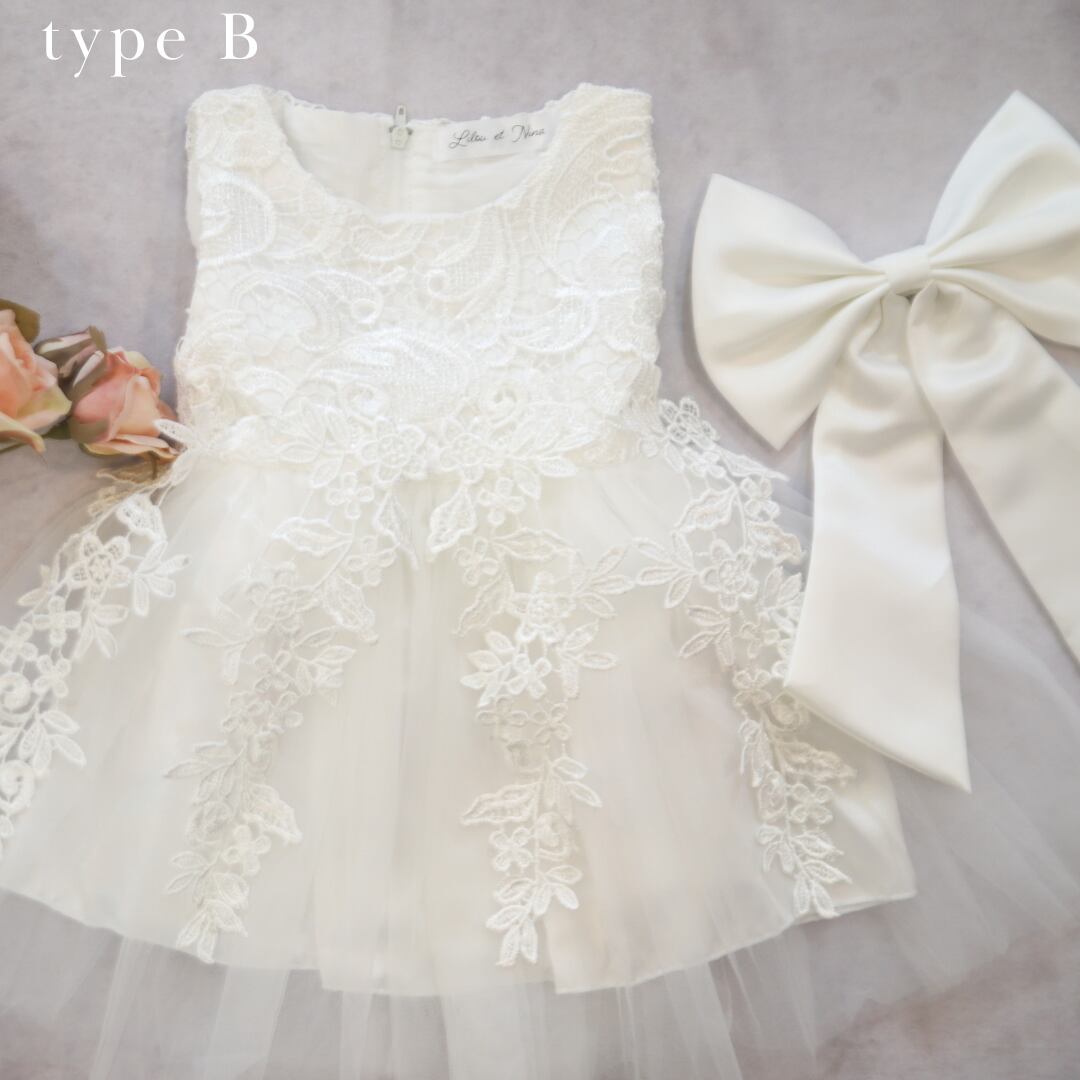 ※typeAは取り外し可能なリボンのみ、typeBは取り外し可能なリボン+背中で結ぶリボンが備え付け(取り外し不可)でございます